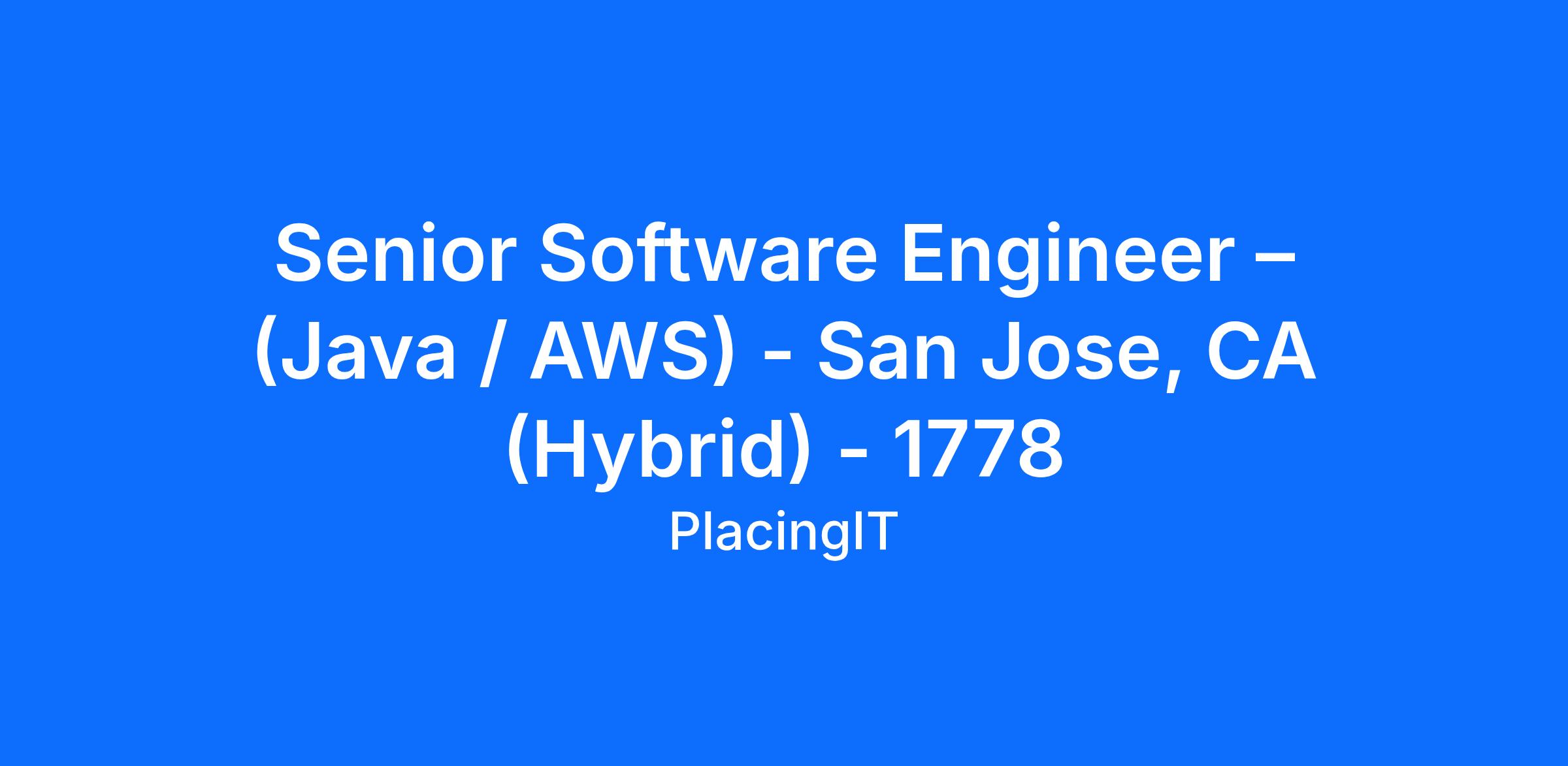 Senior Software Engineer – (Java / AWS) - San Jose, CA (Hybrid) - 1778