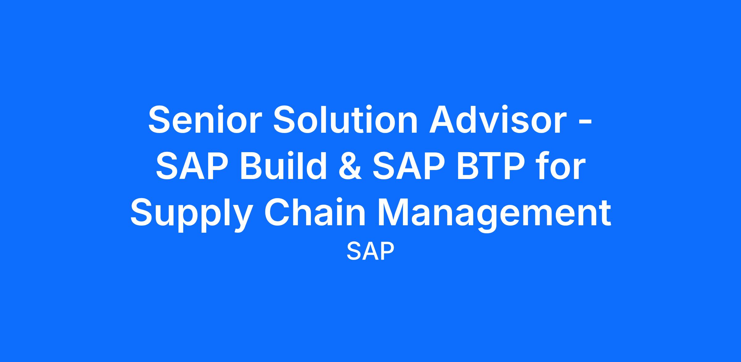 Senior Solution Advisor – SAP Build & SAP BTP for Supply Chain Management