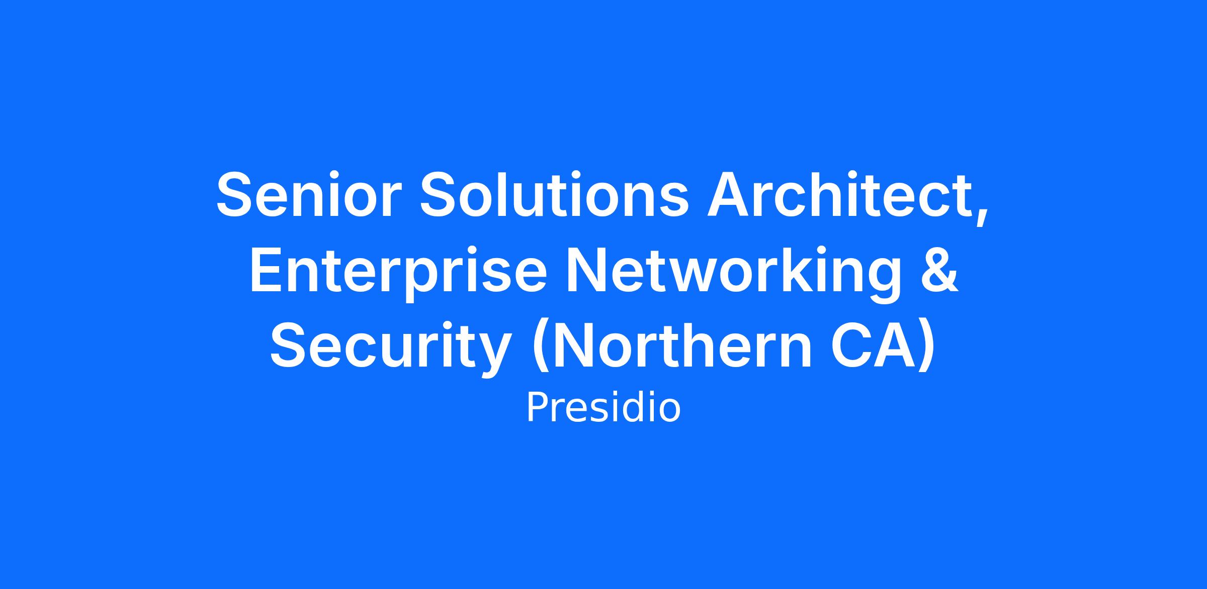 We are looking to add a skilled Senior Solutions Architect to our team in the Bay Area, CA. As a member of the Pre-Sales Engineering Team, you will be responsible for meeting with Presidio’s customers, collecting requirements for business solutions related to network, datacenter, security, data/AI, and collaboration projects, and developing engineering solutions for sale to Presidio customers. You should be exceptional at collaborating across sales, delivery, and operations teams whilst influencing internal teams and OEM relationships.