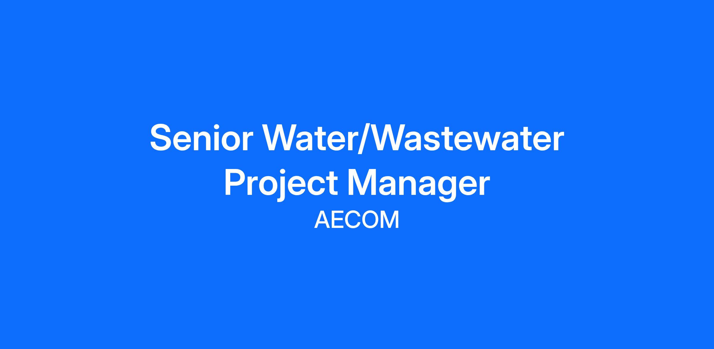 AECOM is seeking an experienced Senior Water/Wastewater Project Manager for our Chicago office. The qualified applicant will have experience in water/wastewater engineering and construction management principles, and will be familiar with the design, construction, and operation of municipal water and/or wastewater treatment and conveyance infrastructure.