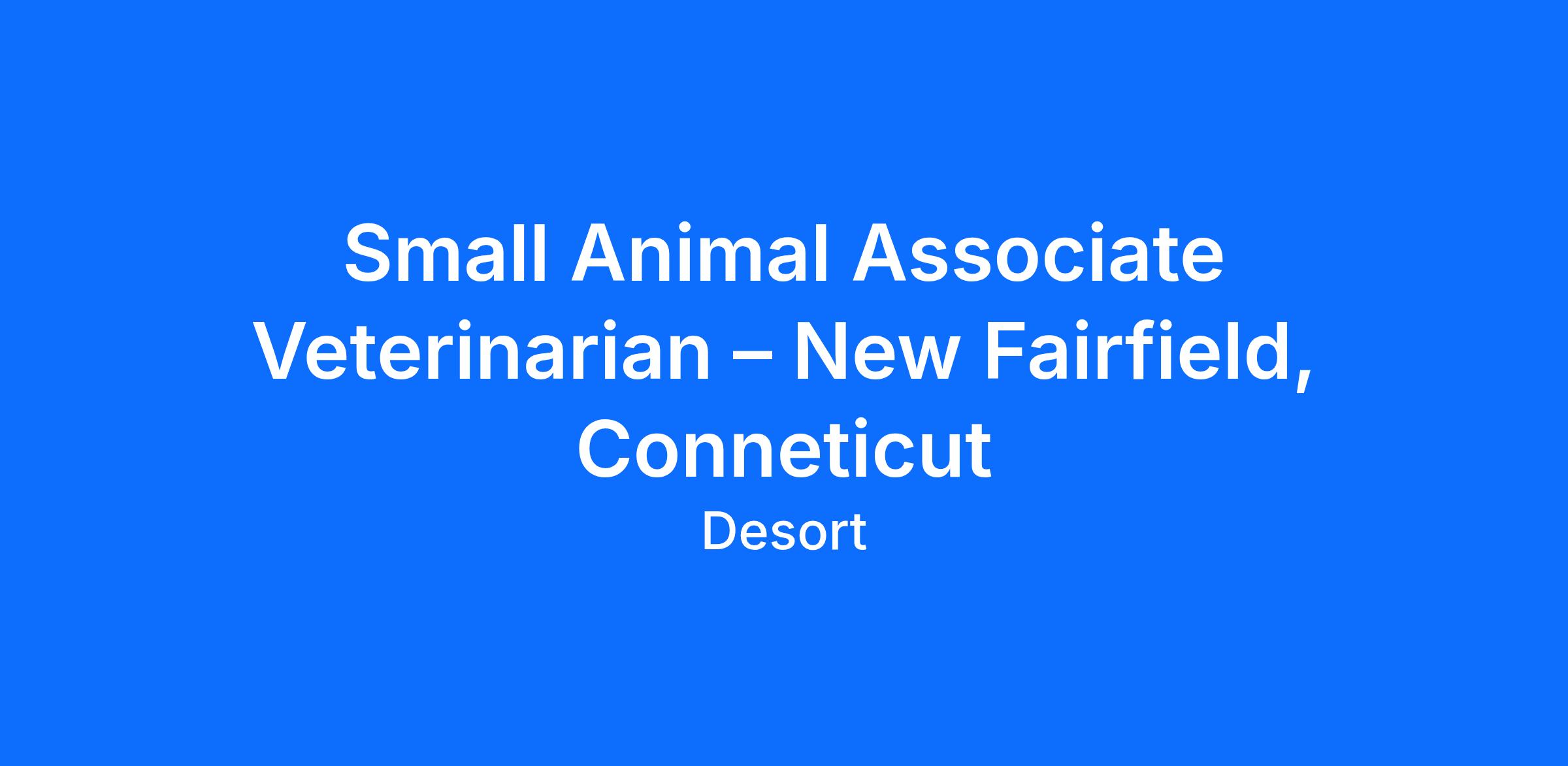 Small Animal Associate Veterinarian – New Fairfield, CT