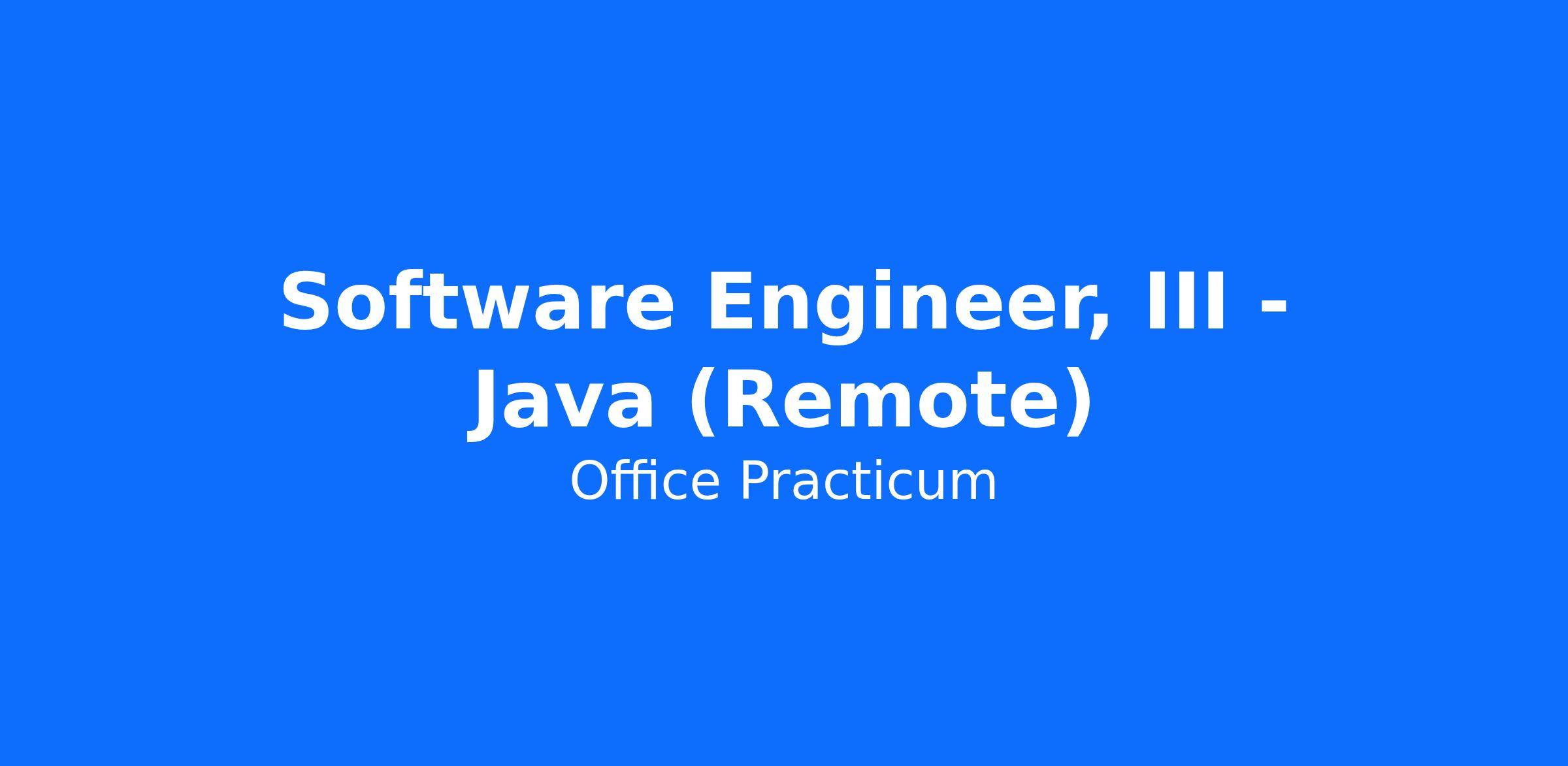 Software Engineer, III - Java (Remote)