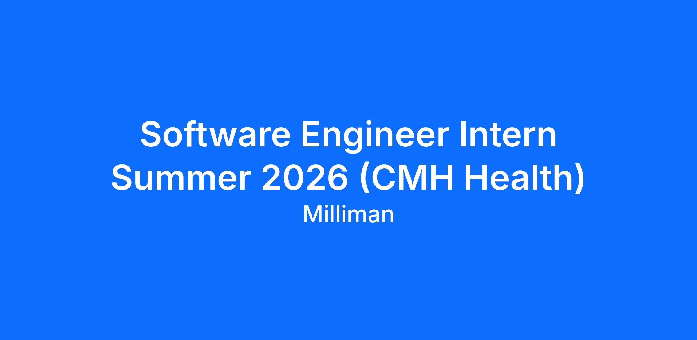 Milliman’s CMH Health Practice is seeking motivated undergraduate and graduate students pursuing degrees in mathematics, computer science, or related fields to join the Products team for Summer 2026. Interns will work on software and Generative AI applications that support our healthcare products and client services.