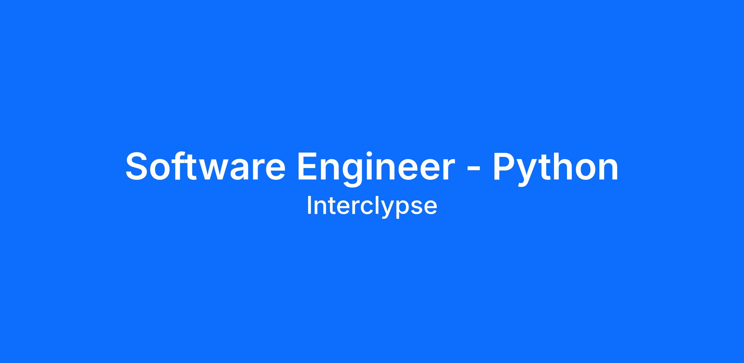 Interclypse is an Equal Opportunity/Affirmative Action employer. All qualified applicants will receive consideration for employment without regard to race, color, religion, creed, sex, sexual orientation, gender identity, national origin, disability, or protected Veteran status.