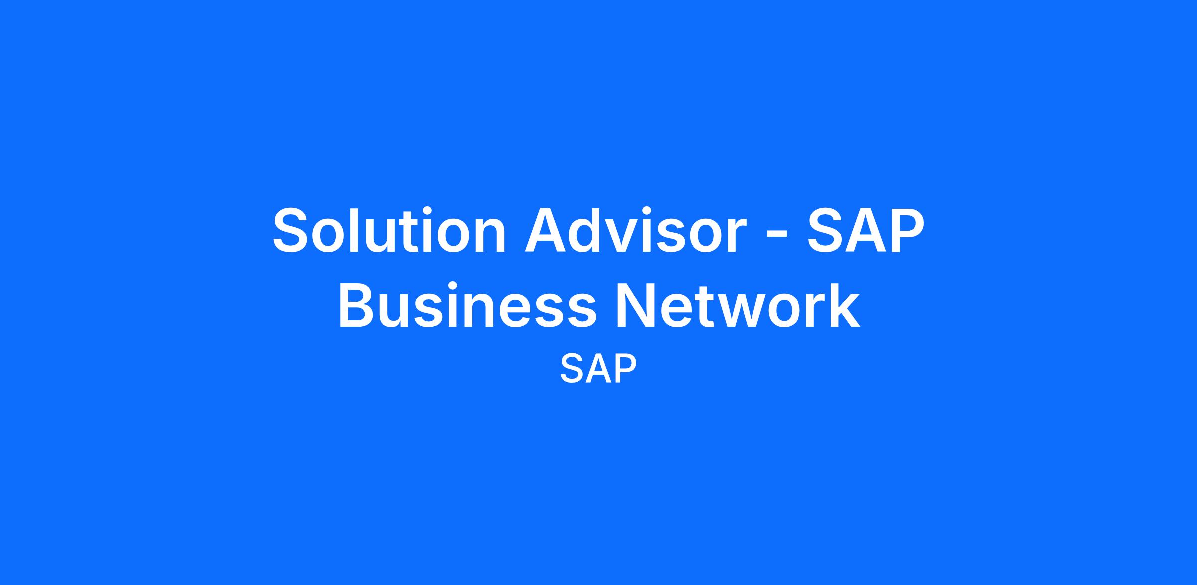 Solution Advisor - SAP Business Network