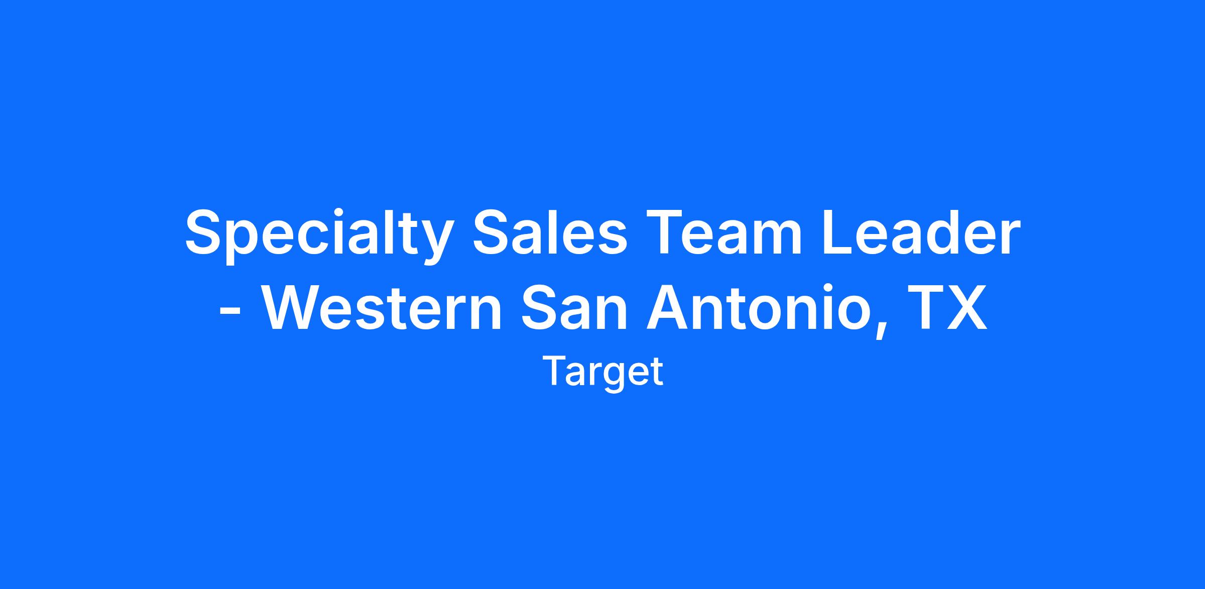 Specialty Sales Team Leader - Western San Antonio, TX