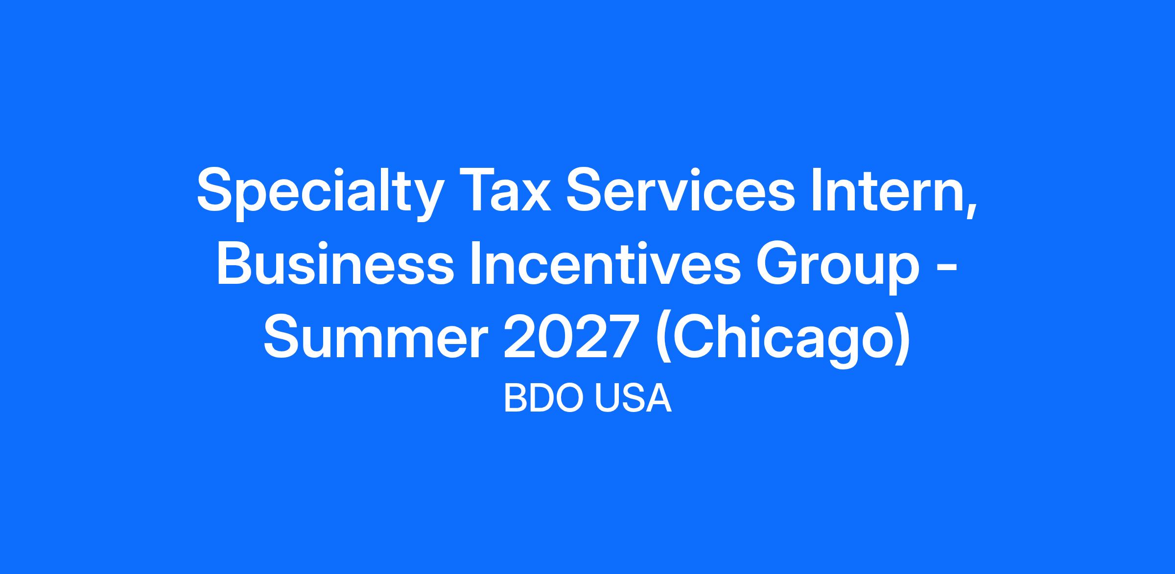 Specialty Tax Services Intern, Business Incentives Group - Summer 2027 (Chicago)
