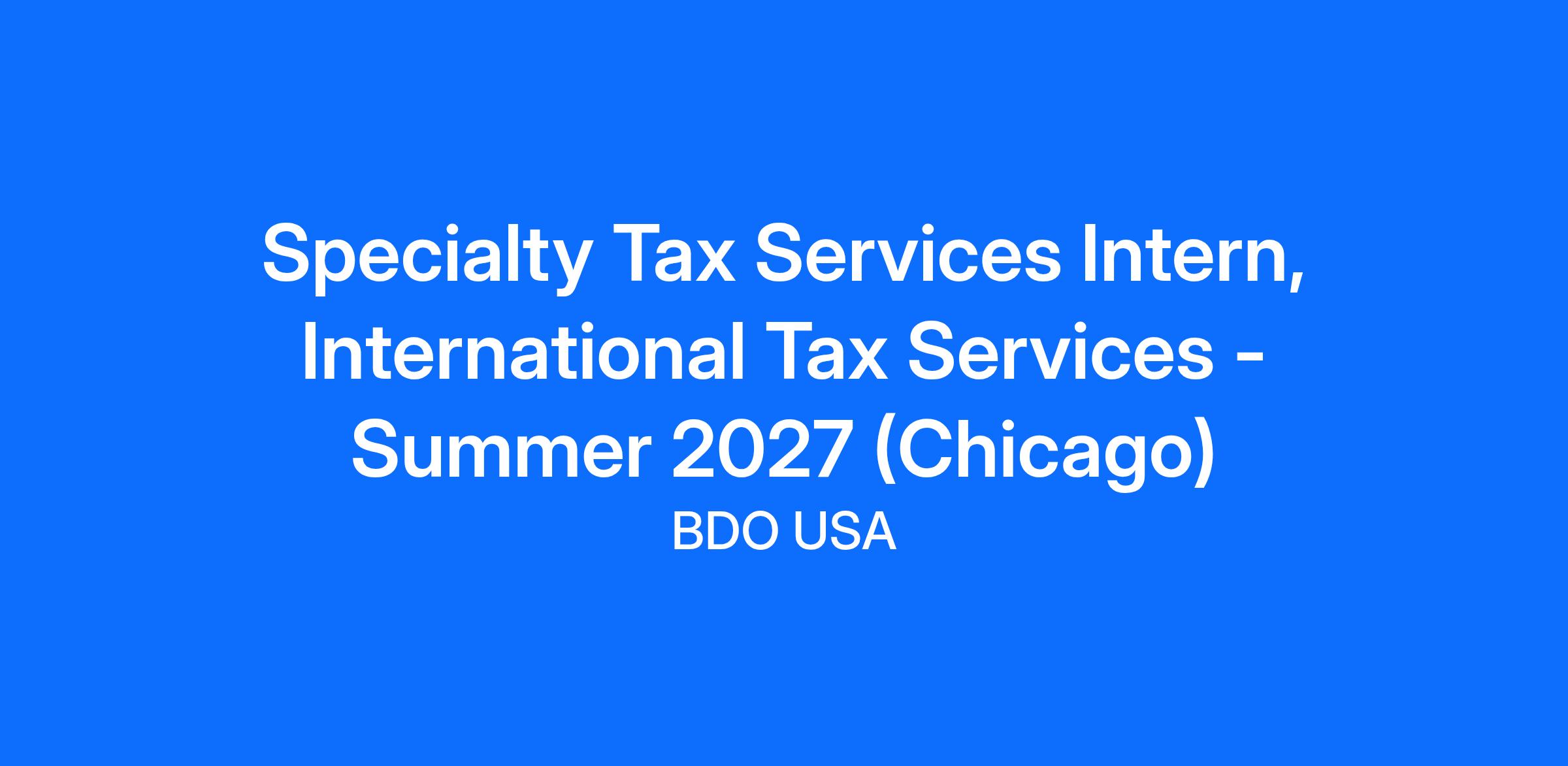 The Tax Intern, International Tax Services will utilize their educational background and organizational skills while taking direction from more experienced team members to become familiar with assisting in consulting with clients on cross-border tax matters. Responsibilities will include performing tax research and analysis of various international tax issues to assist in providing international tax advice and working with software applications to assist clients with tax reporting obligations for international operations.