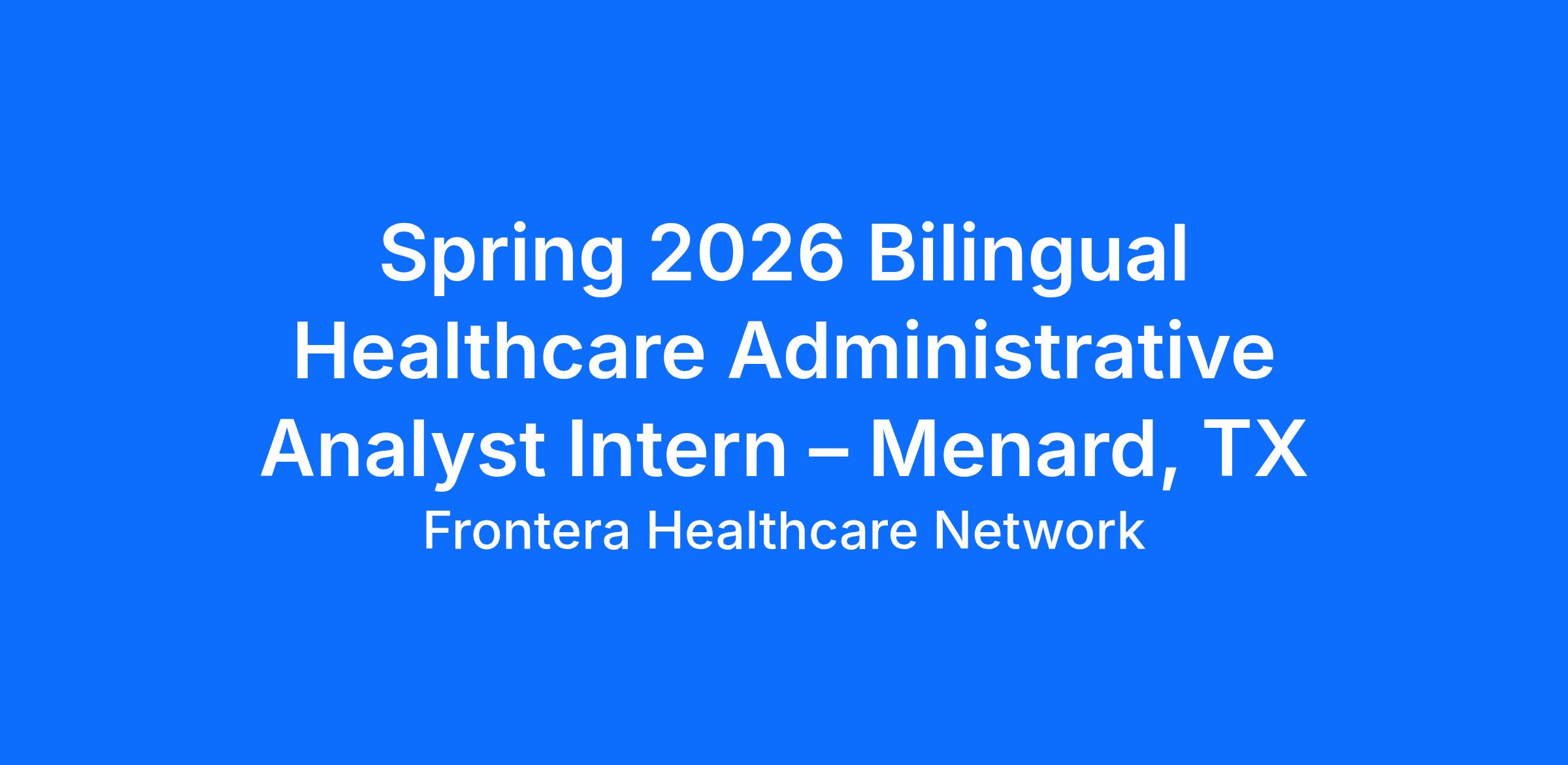 Spring 2026 Bilingual Healthcare Administrative Analyst Intern