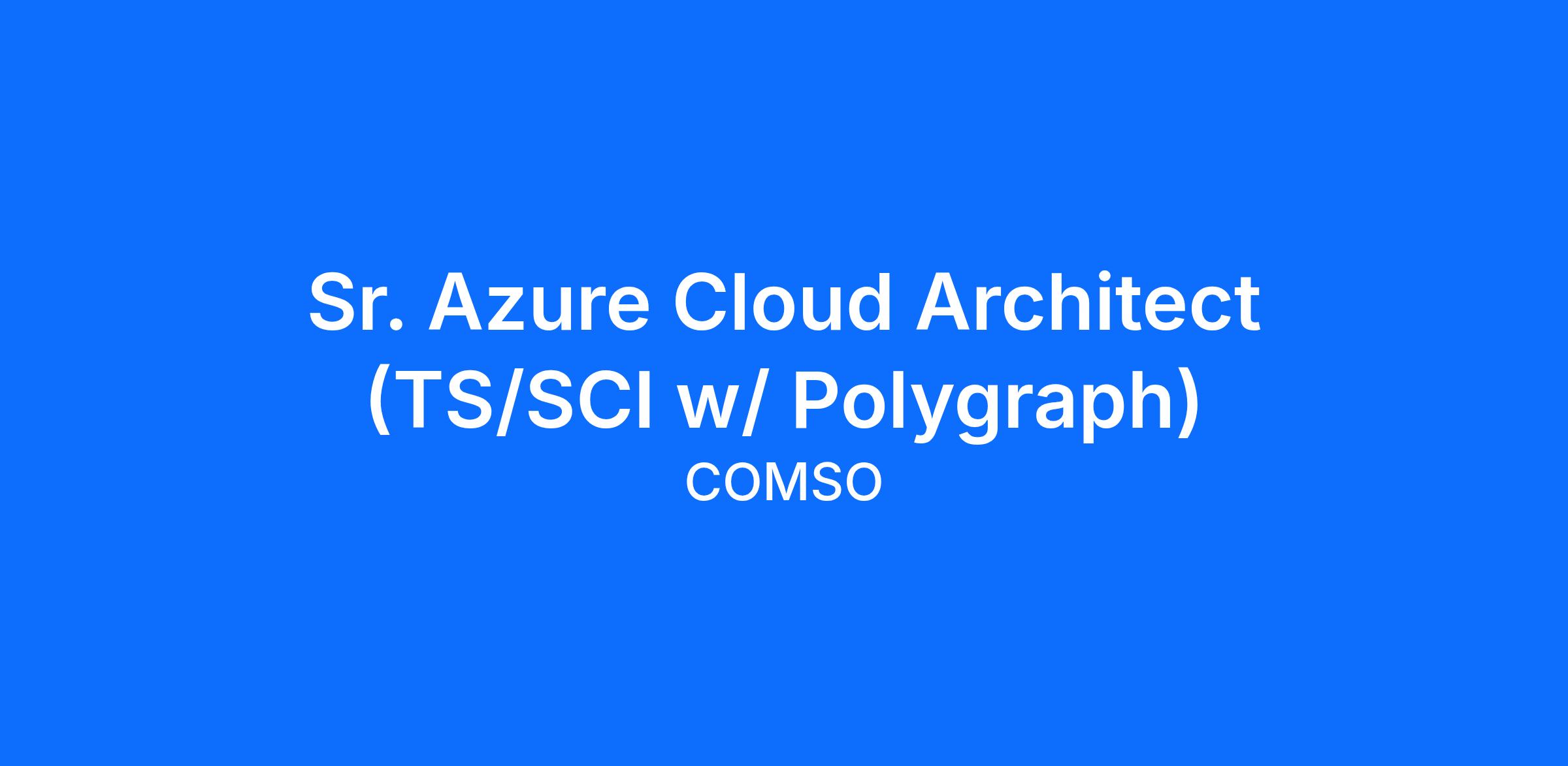 Currently, we are seeking a Sr. Azure Cloud Architect (TS/SCI w/ Polygraph) to join our Team!
