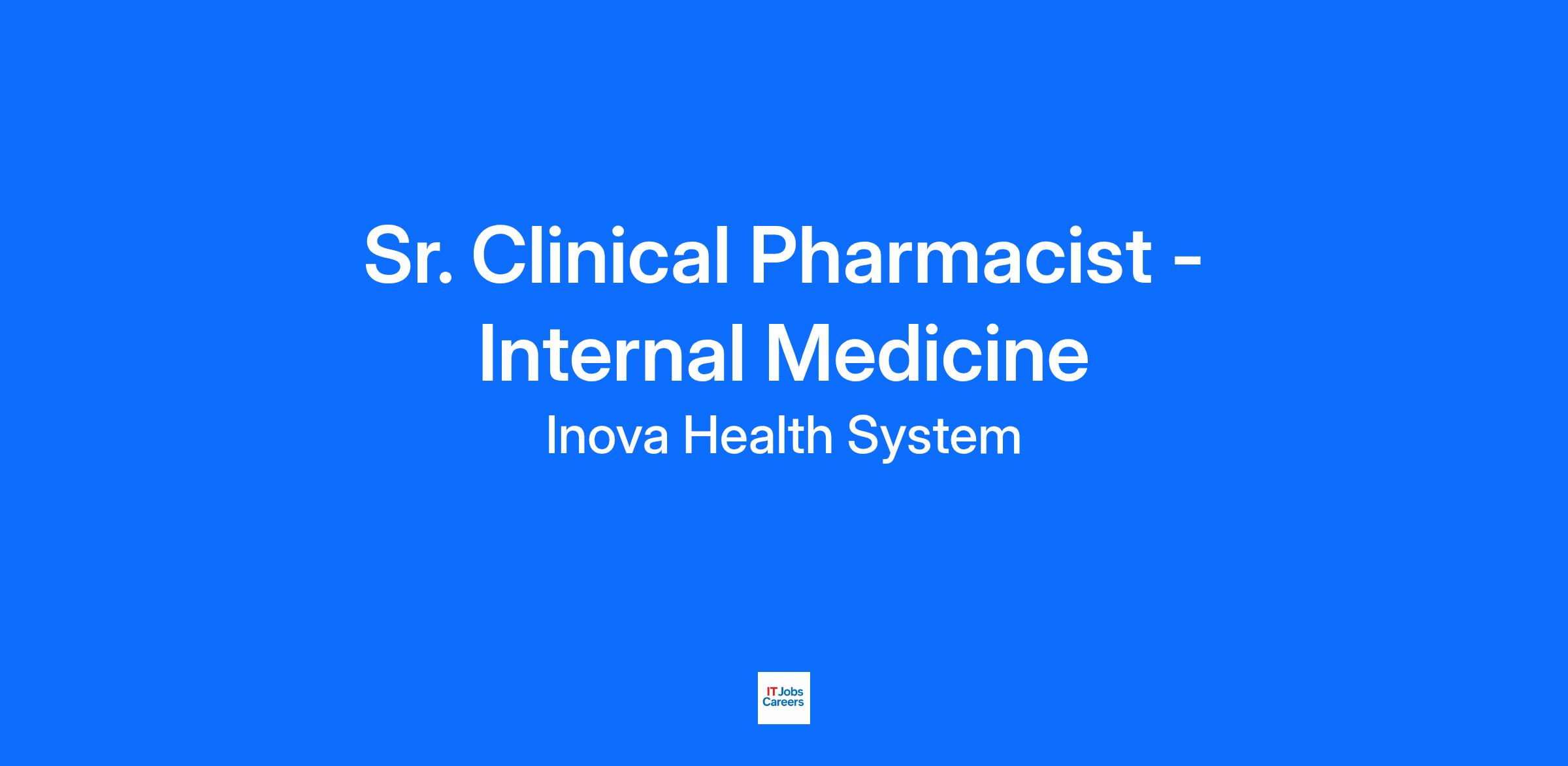 Inova Loudoun Hospital is seeking a dedicated Senior Clinical Pharmacist – Internal Medicine to join the team. This role will be full-time Monday – Friday, day shift. Rotating holidays |Sign-on Bonus & relocation assistance eligible.
