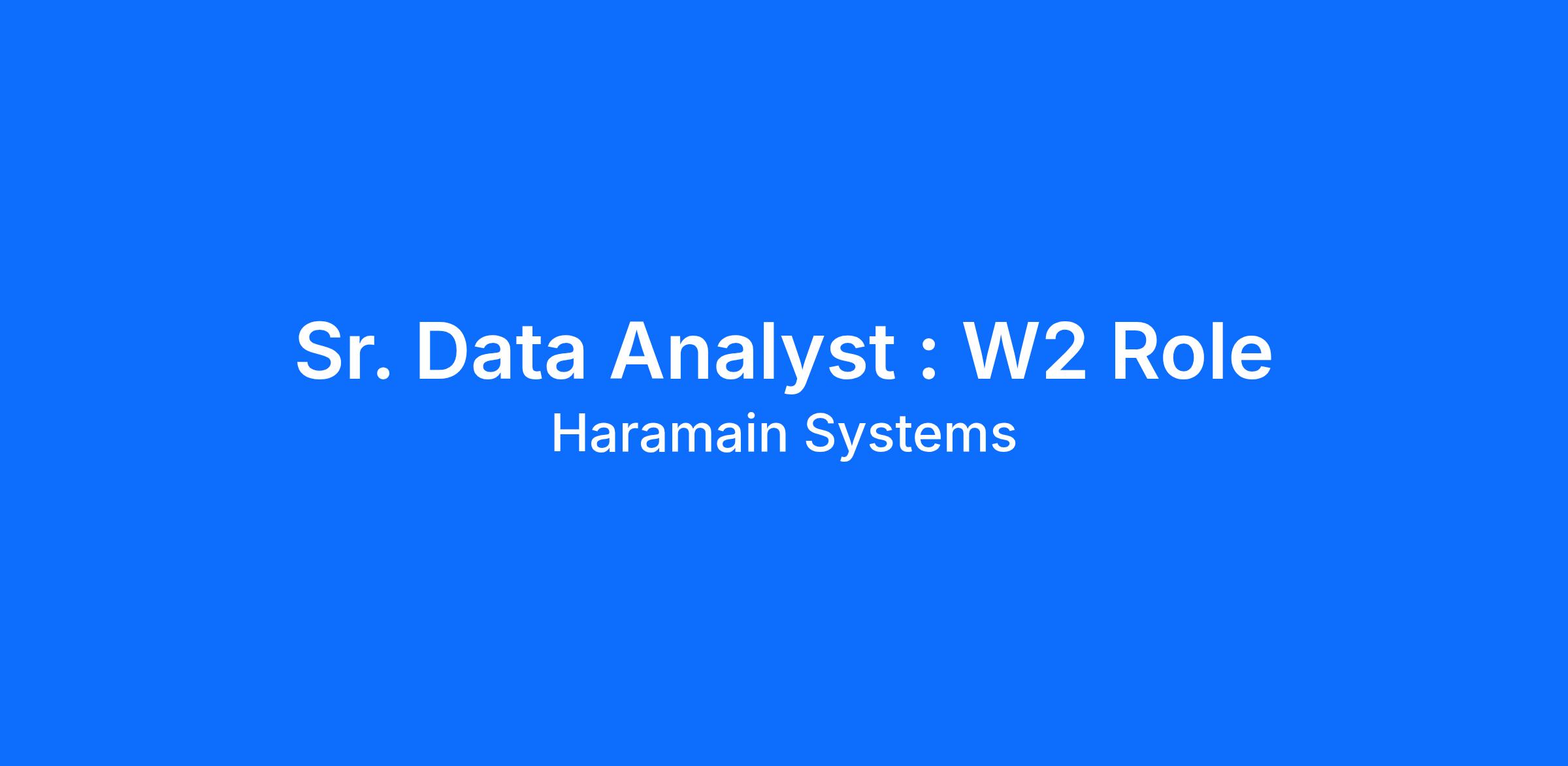 Sr. Data Analyst : W2 Role