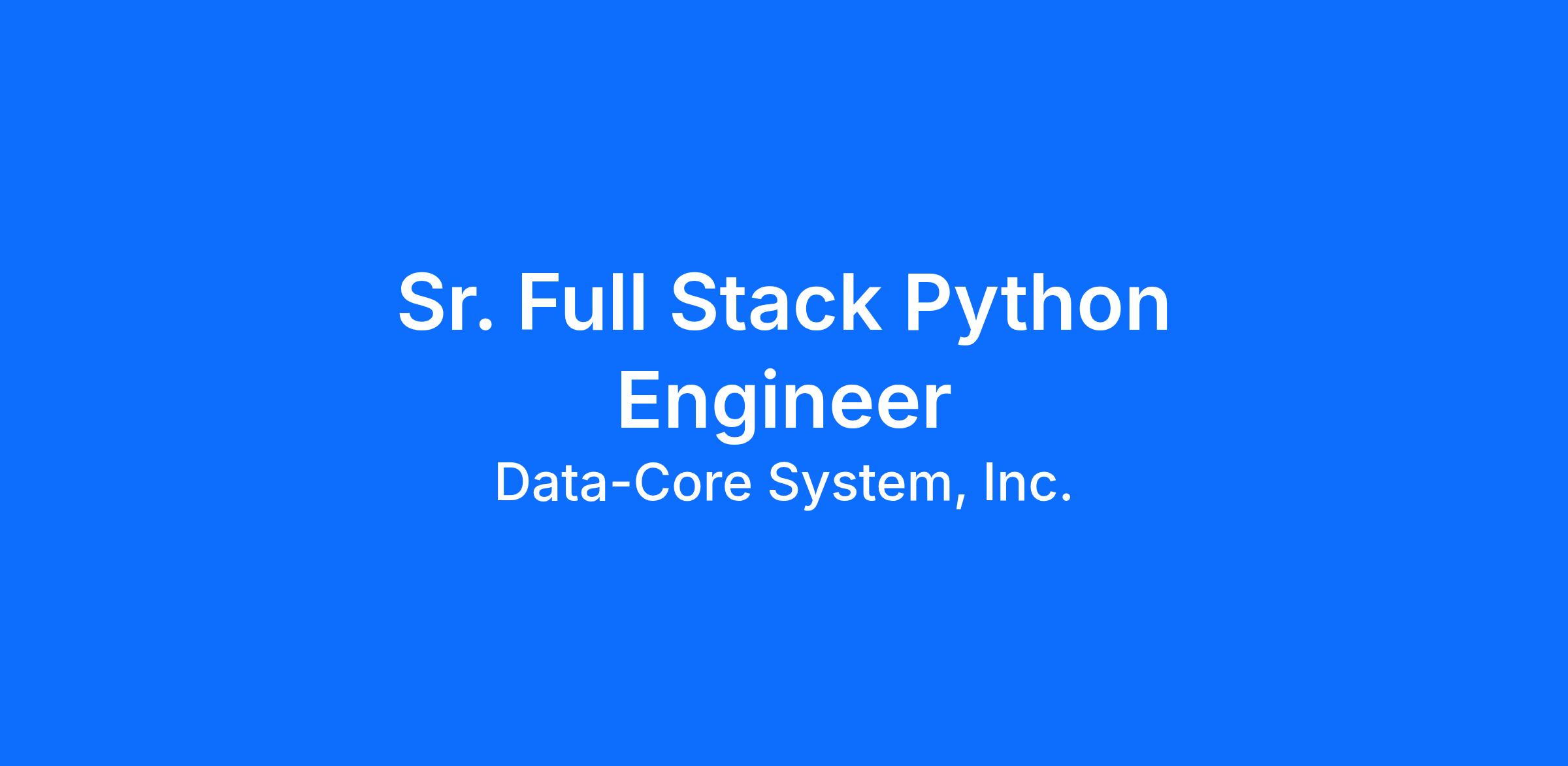 Data-Core Systems Inc. is seeking an Sr. Full Stack Python Engineer to be a part of our Consulting team. You will participate and effectively contribute to the design, development, and implementation of complex applications, often using new technologies. You will provide technical expertise and systems design for individual initiatives. You will have an opportunity to work with other SME consultants from our existing team.
