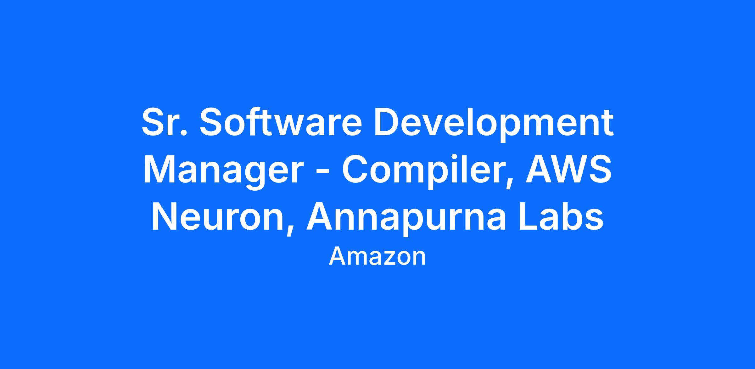 Sr. Software Development Manager - Compiler, AWS Neuron, Annapurna Labs