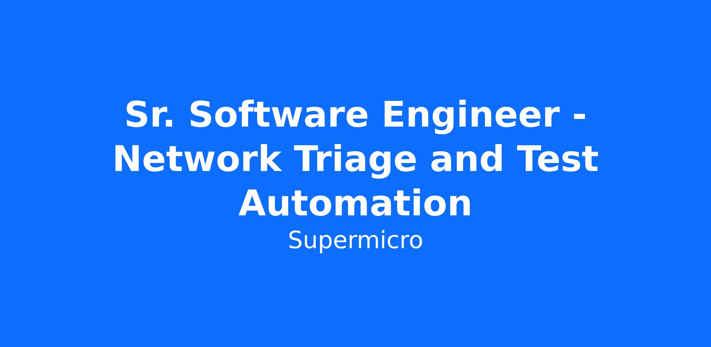 Super Micro Computer, Inc. is currently seeking a highly experience Sr. Software Engineer - Network Triage and Test Automation. The candidate will be responsible for promoting switch products, program manage and work with development and testing teams to features.