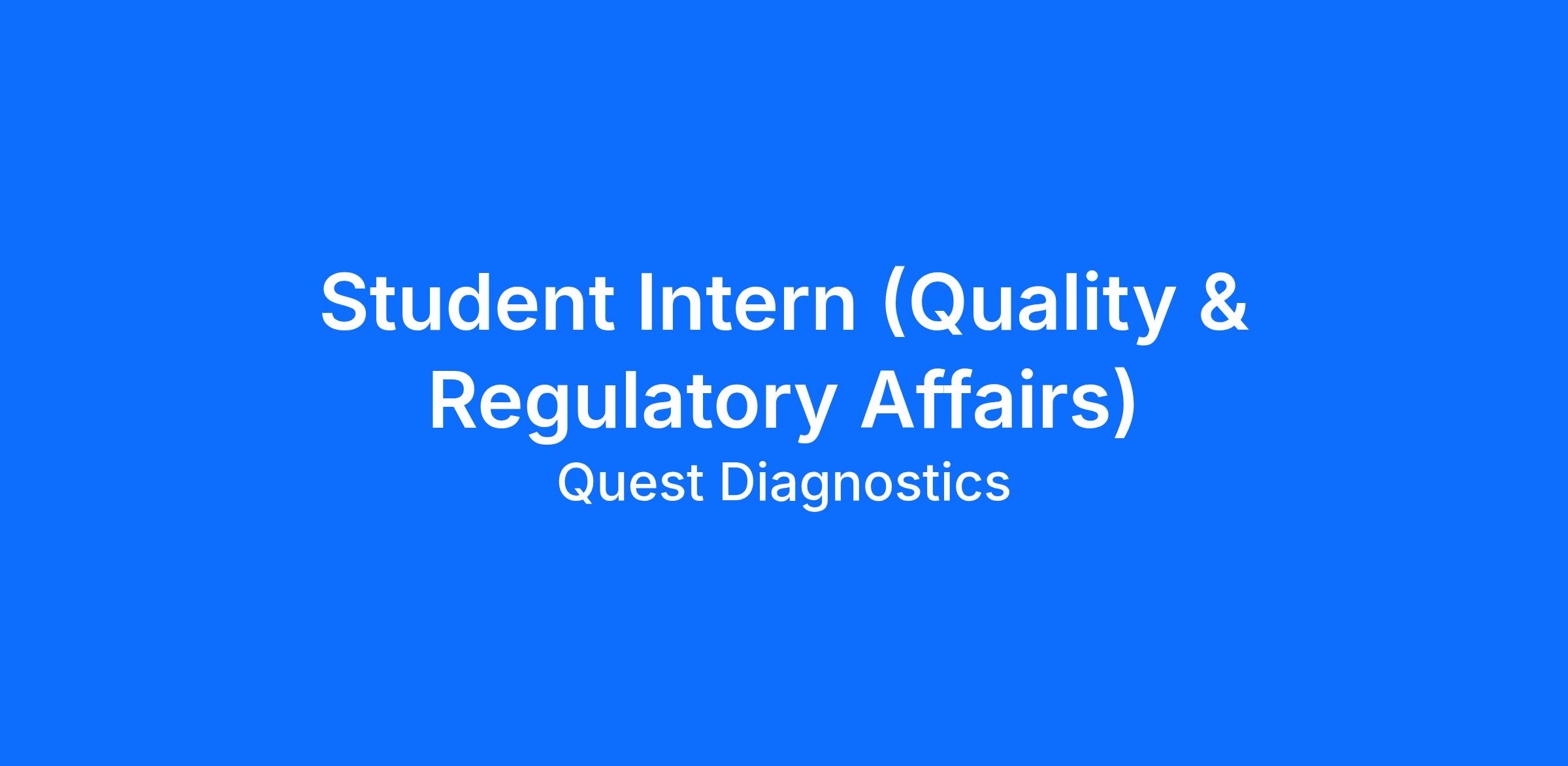 DescriptionSummer Quality/Regulatory Affairs Summer Internship Program offers students the opportunity to gain experience in Public Health Reporting by laboratories to support disease surveillance, outbreak detection, population health monitoring and regulatory and mandated reporting.