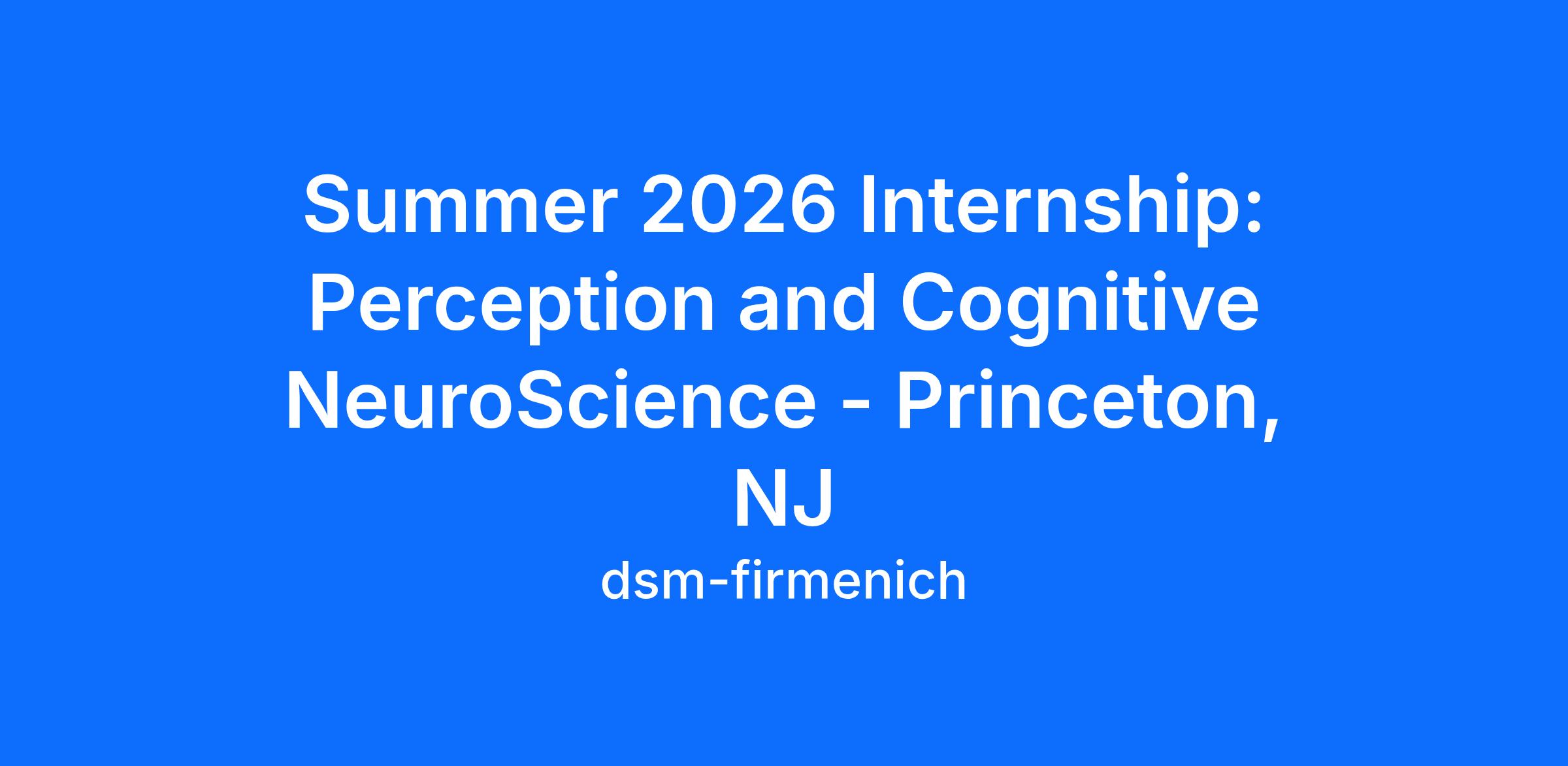 If you’re looking to grow your network and gain new skills within a global company, an internship with dsm-firmenich could be the program for you. Our summer internships provide students opportunities to work on real business projects and gain invaluable professional experience. As an intern, you’ll have exposure to many different areas of a global flavors, fragrances, and ingredients organization that works with some of the biggest brands in the world, along with opportunities to network with your peers and leadership. From engaging events to mentoring opportunities and valuable resume-building experiences, we’re committed to preparing you for a fulfilling and enduring career, both at dsm-firmenich and beyond. We are currently looking for a Perception and Cognitive NeuroScience Intern at our Princeton, NJ office.