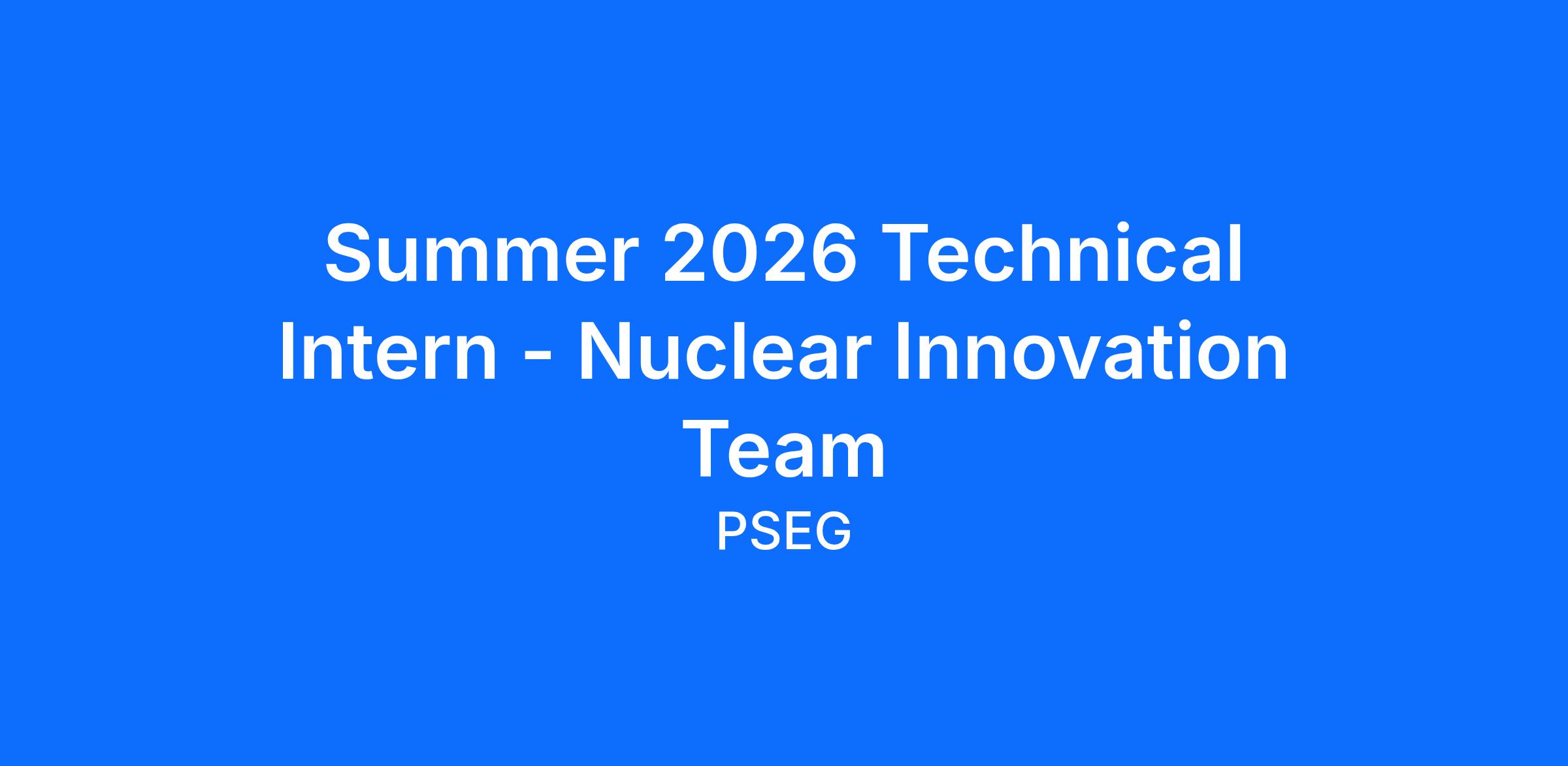 PSEG is looking for a Summer 2026 Technical Intern for the Nuclear Innovation Team.