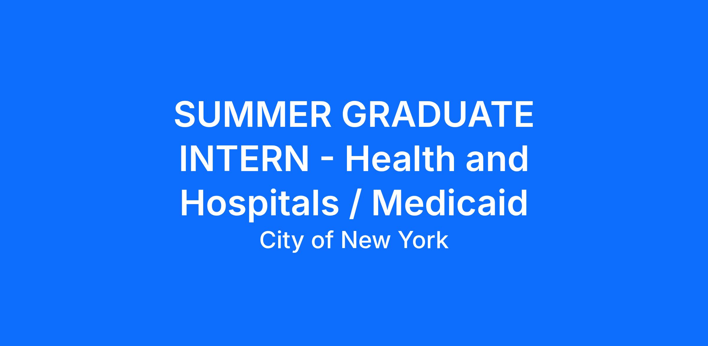 Medicaid Analyses: The Intern will assist with the review of Medicaid policy that could affect the Federal, State, and City’s Medicaid programs.