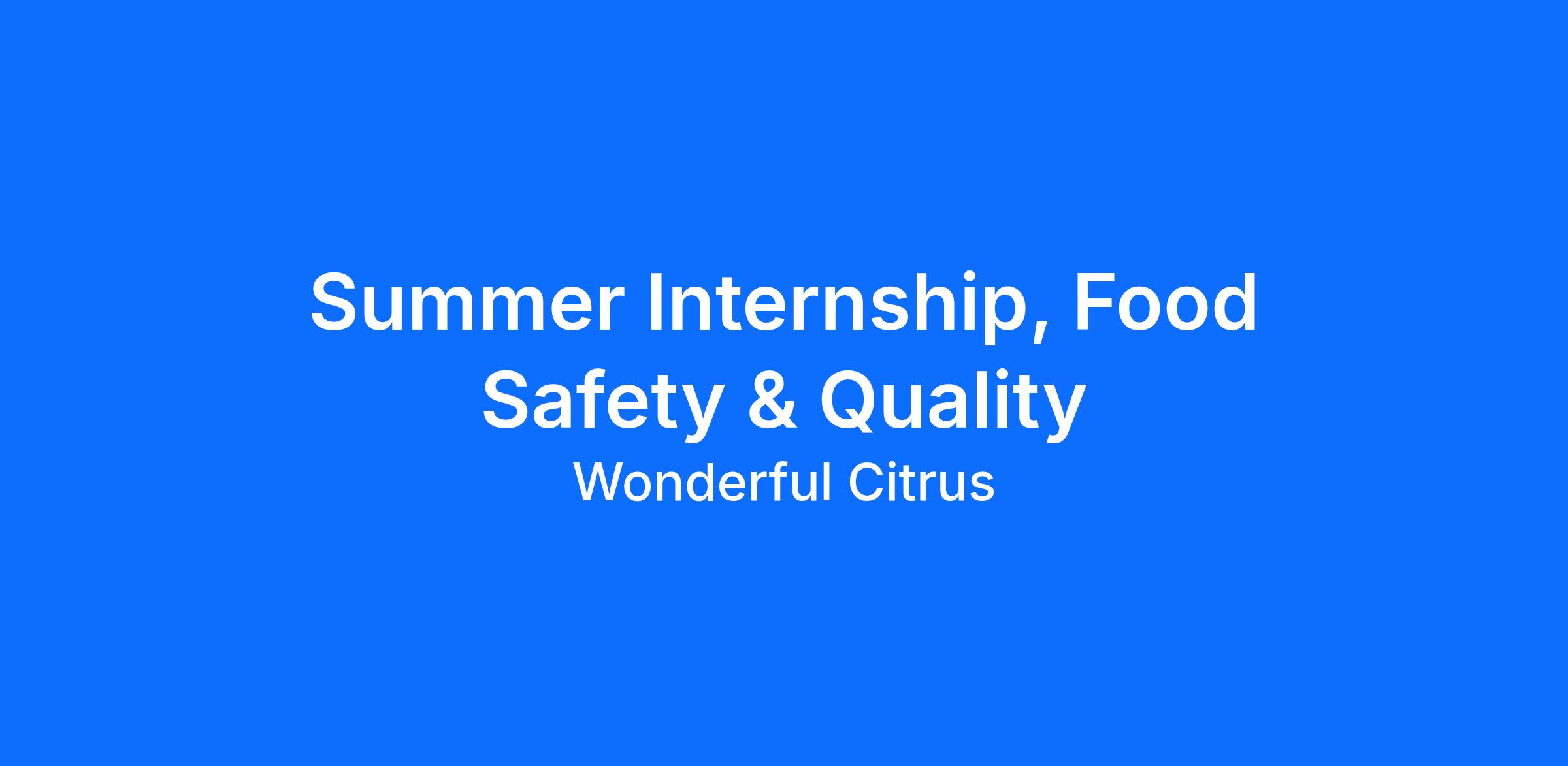 This position will be based on-site at Wonderful Citrus located in Delano, CA. This schedule for this internship is 40 hours per week Monday-Friday. Days of the week and work hours may change due to business needs.