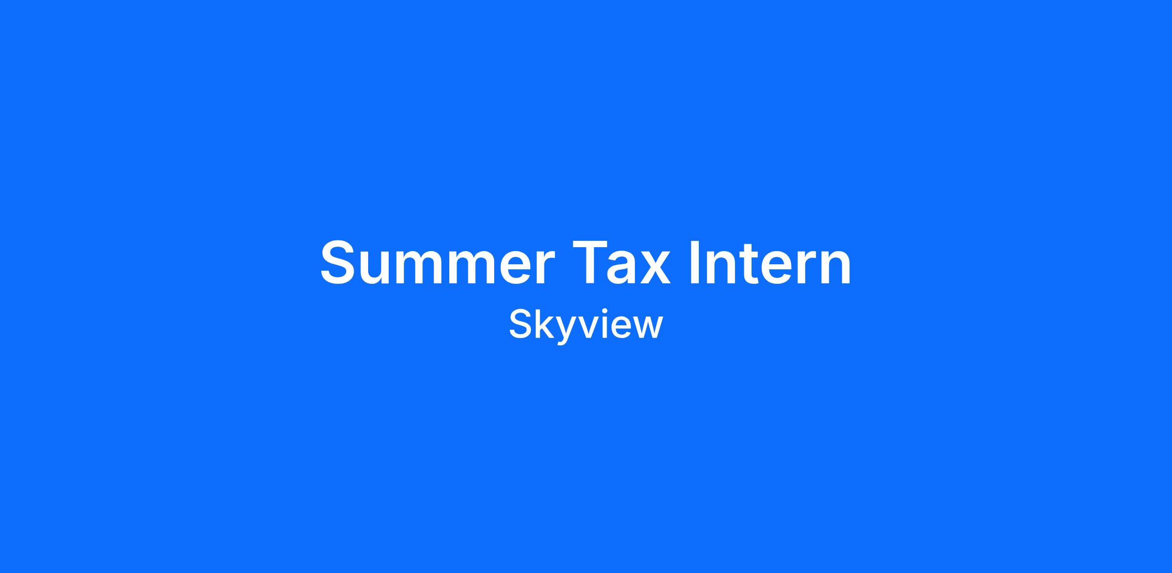 Skyview has an immediate opening for a self-motivated, hard-working individual to join our Tax Finance team. This is a great opportunity to gain experience and contribute to the growth of a complex and fast moving investment management company. Please apply only if you reside in Dallas or are interested in relocating to Dallas, Texas.