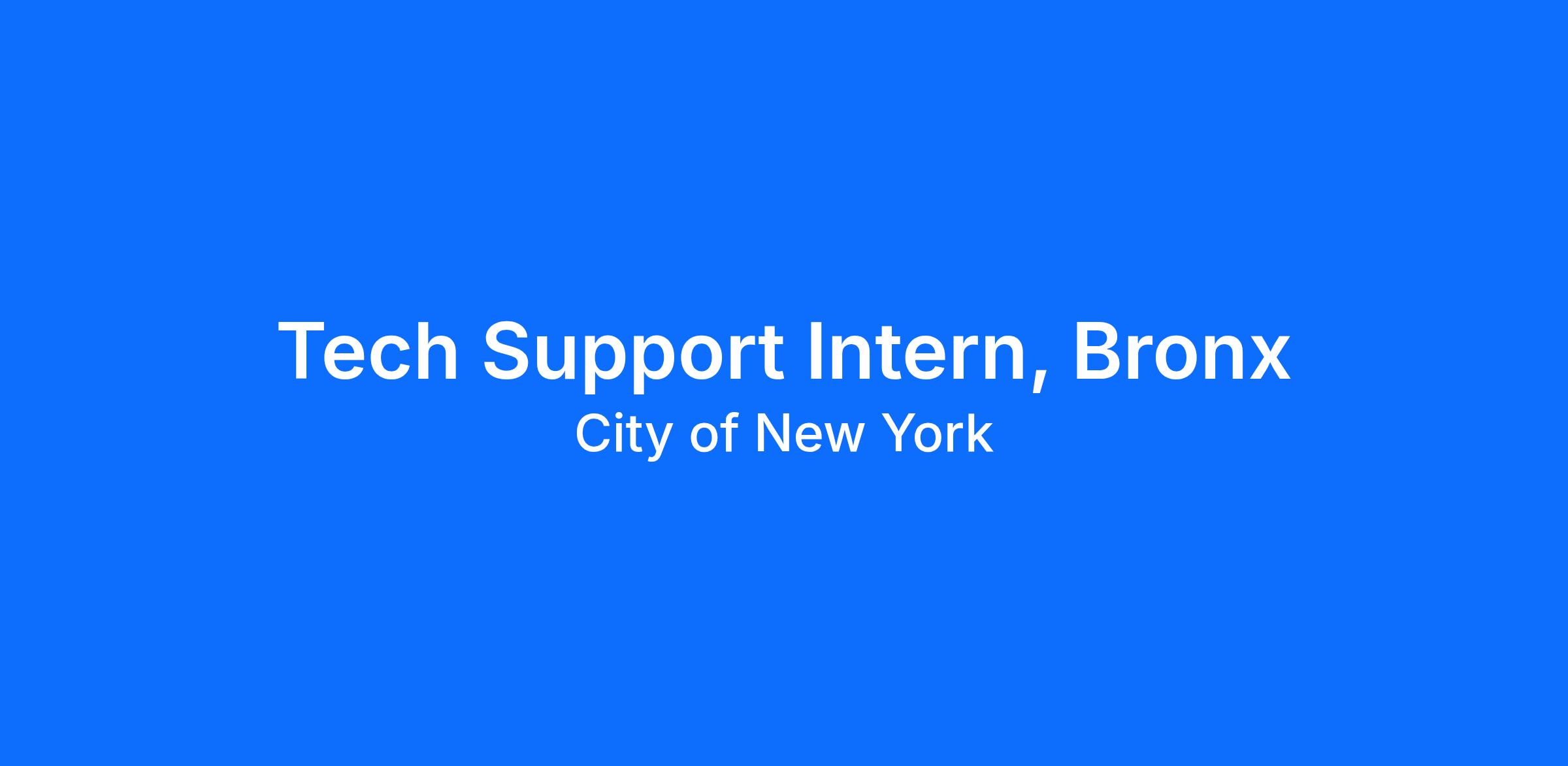 OIT is seeking a highly motivated and detail-oriented IT Technical Support Undergraduate Intern to join our Bronx team. As an IT Technical Support Undergraduate Intern, you will gain practical experience in providing IT Technical Support for a large government organization consisting of approximately 7,000 employees across 38 locations. This internship offers a valuable opportunity to work alongside an IT Technical Support Unit to provide desktop support services for ACS Child Protective Specialists in all field locations, including desktop computers, laptops, printers, smart phones, tablets, conference room technologies, and database applications. Additionally, as a member of the 2026 ACS Summer Internship Program cohort, you will participate in an enrichment program designed to fully engage students into the ACS and NYC government experience. Internship programming includes professional development workshops, lunch and learns, speaker events, NYC government tours, and networking opportunities.