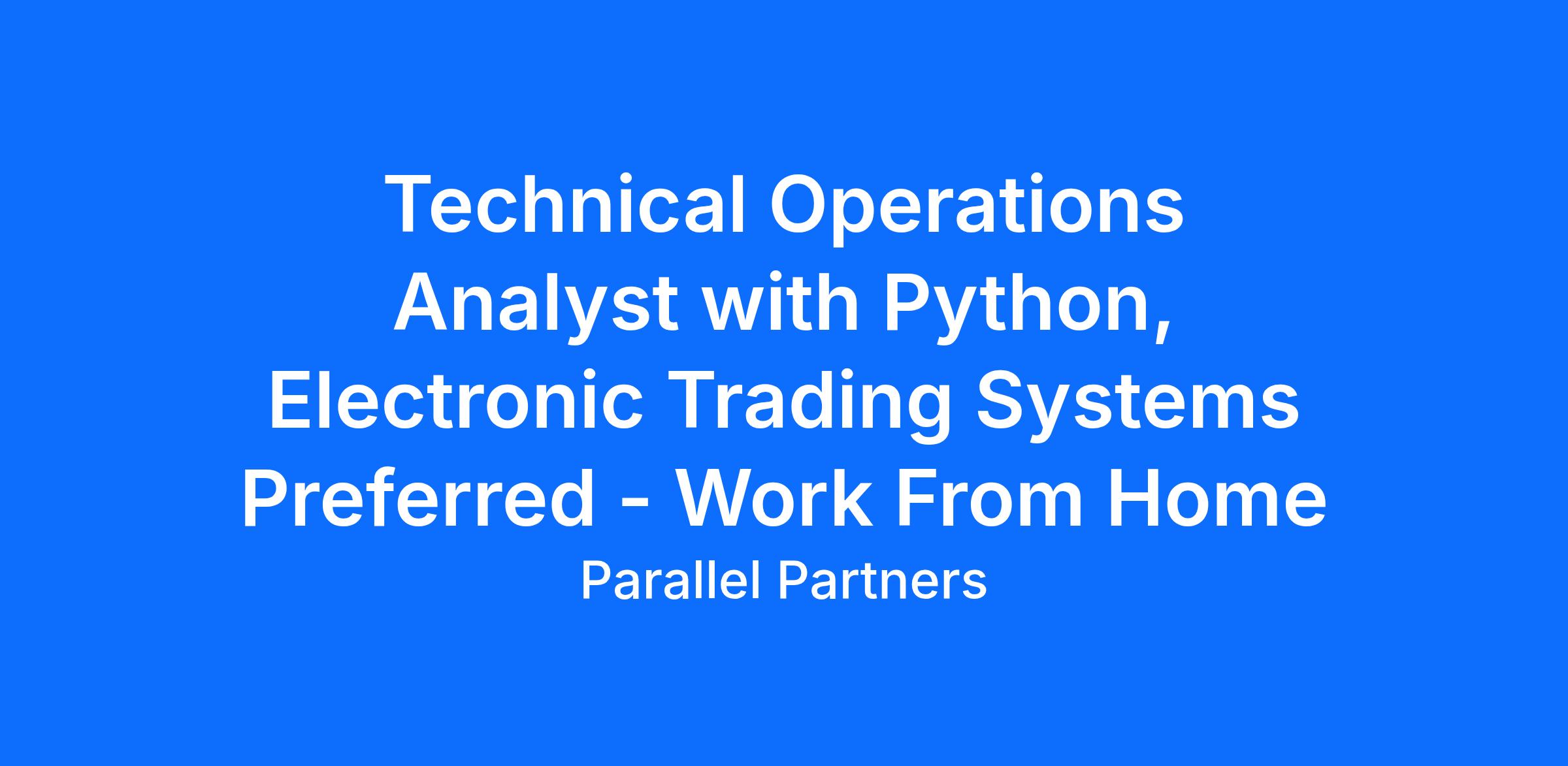 Technical Operations Analyst with Python, Electronic Trading Systems Preferred - Work From Home