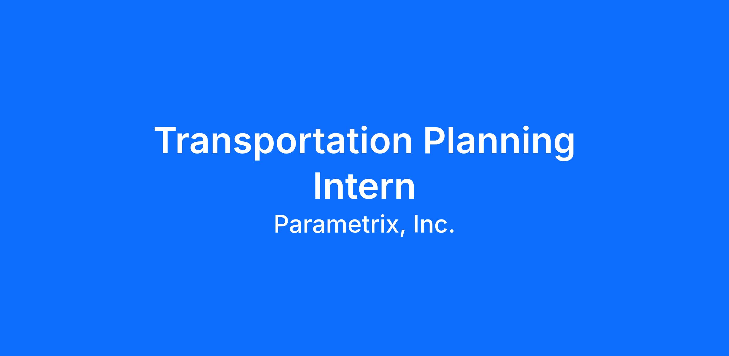Parametrix is seeking a Transportation Planning Intern to join our team in Seattle. This internship provides an opportunity to work alongside planners and engineers on projects focused on multimodal corridors, transit, and active transportation planning. Interns will gain hands-on experience supporting planning analyses, public engagement efforts, and preparation of materials used by clients and project partners.