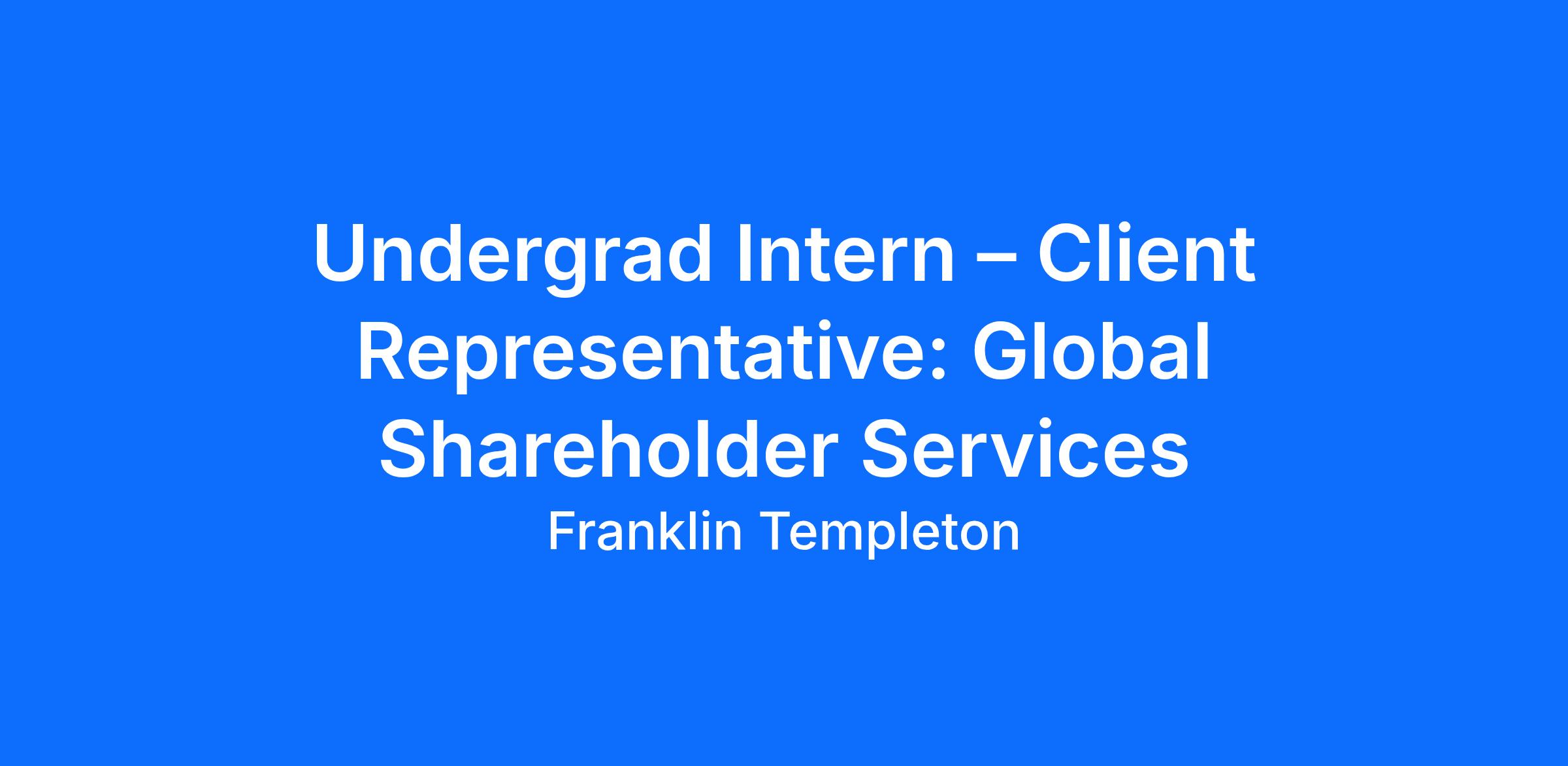 Launch your professional journey with a hands‑on internship at Franklin Templeton, a global investment management firm. As a Client Representative Intern within our Global Shareholder Services (GSS) team, you’ll gain real‑world experience supporting financial advisors and shareholders while developing valuable skills for a future career in financial services.