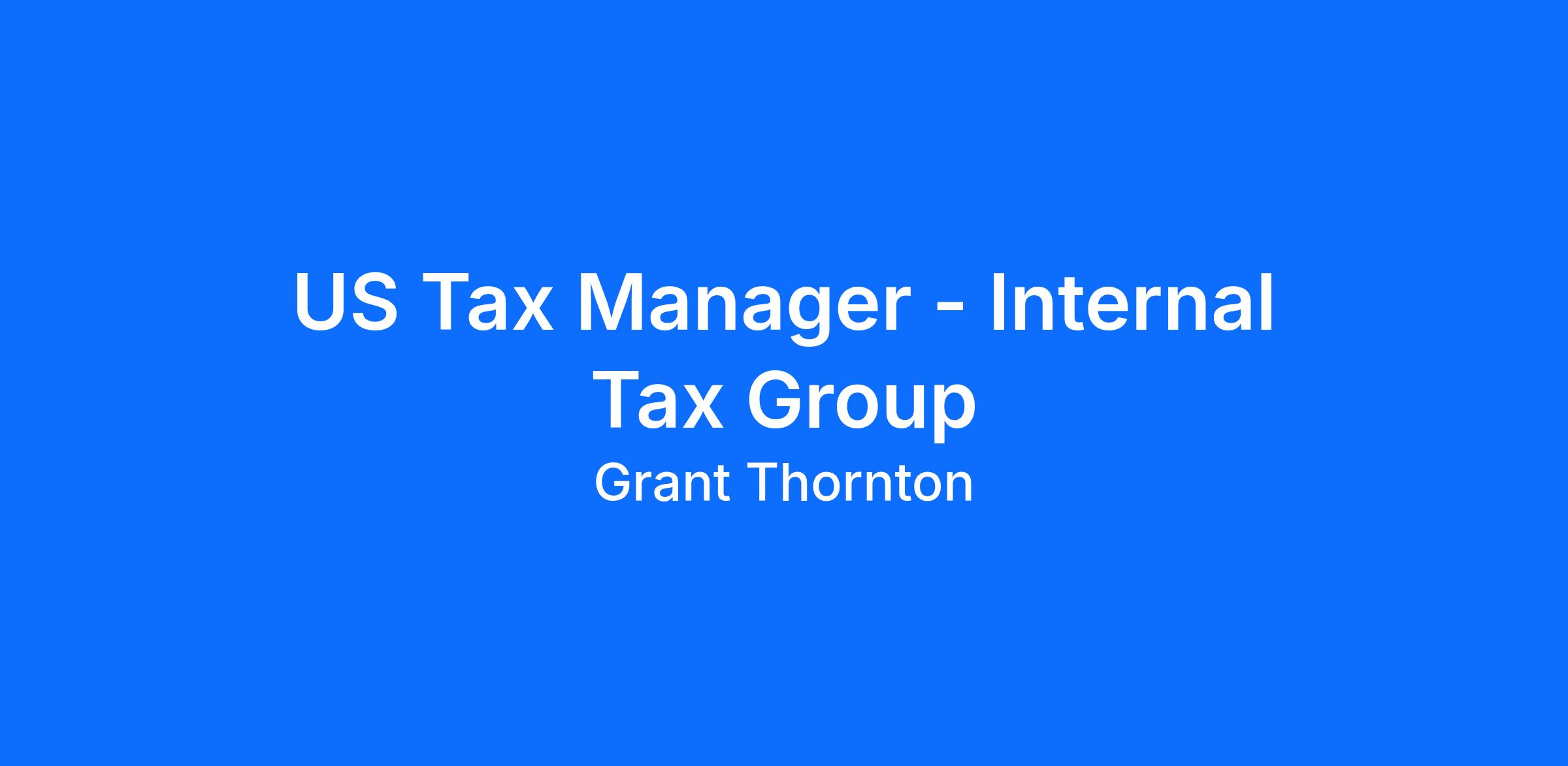 Grant Thornton is seeking a US Tax Manager to join the Internal Tax Group. Approved office locations can be found below.