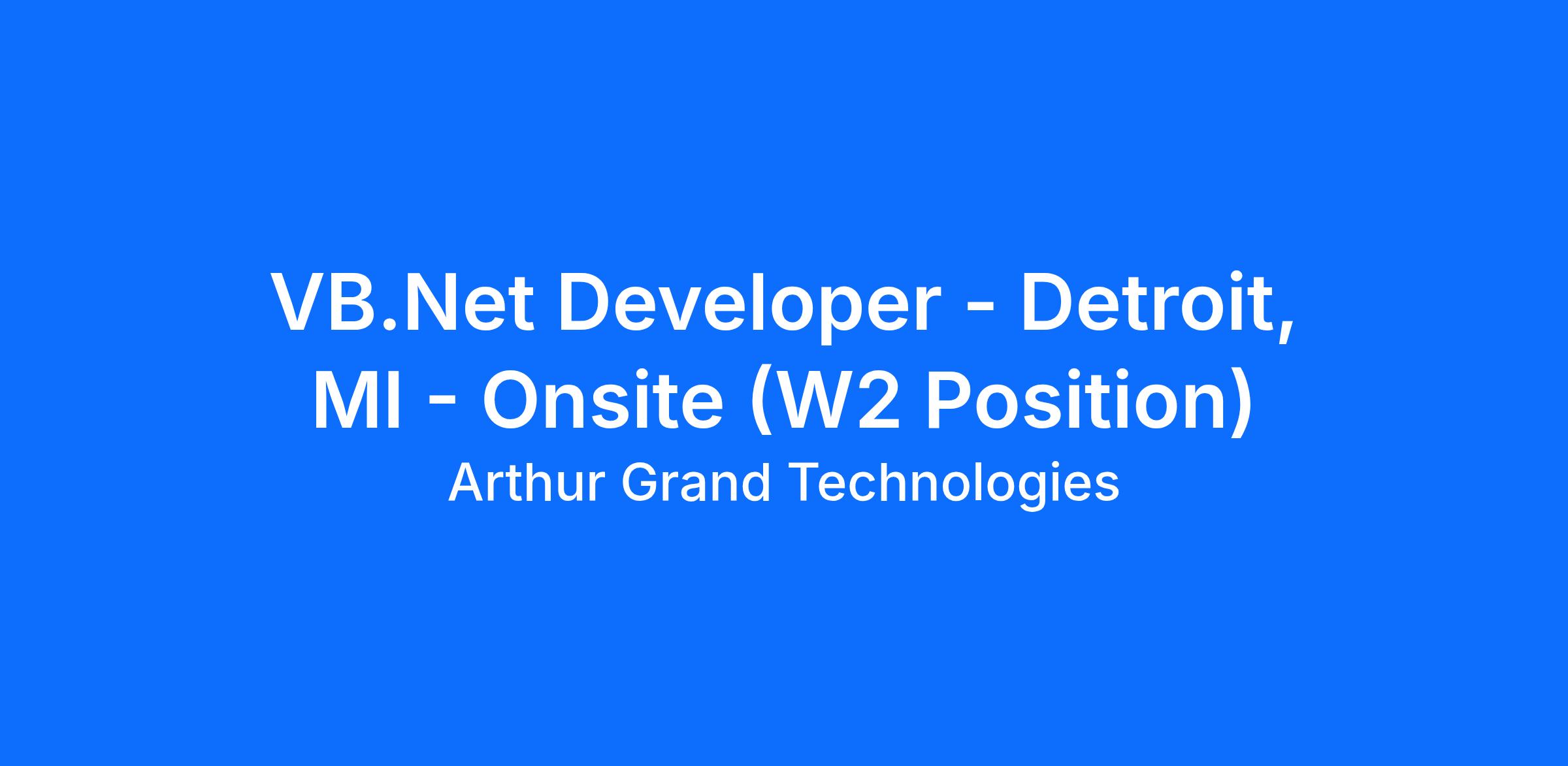 Arthur Grand Technologies is currently seeking a highly motivated and skilled VB.Net Developer – Long Term Contract – Detroit, MI - Onsite for one of our clients.