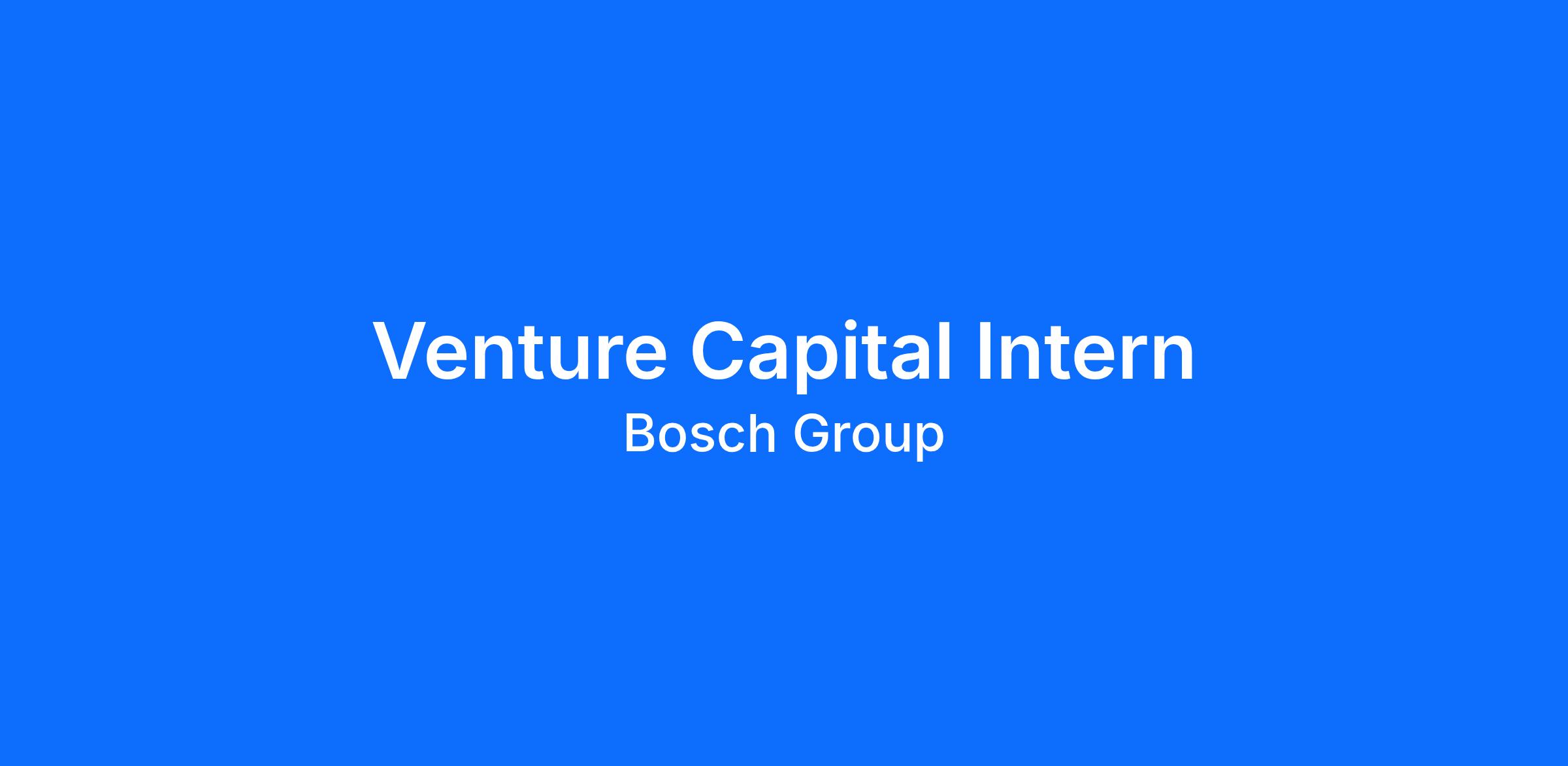 Bosch Ventures invests in technology start-up companies along the line of Robert Bosch’s current and future business. Bosch is one of the largest private companies worldwide with more than 80 billion Euros of sales. Founded in 1886, Bosch is a leading global supplier of automotive, industrial technology, consumer goods and building technology. You would work with the US group.