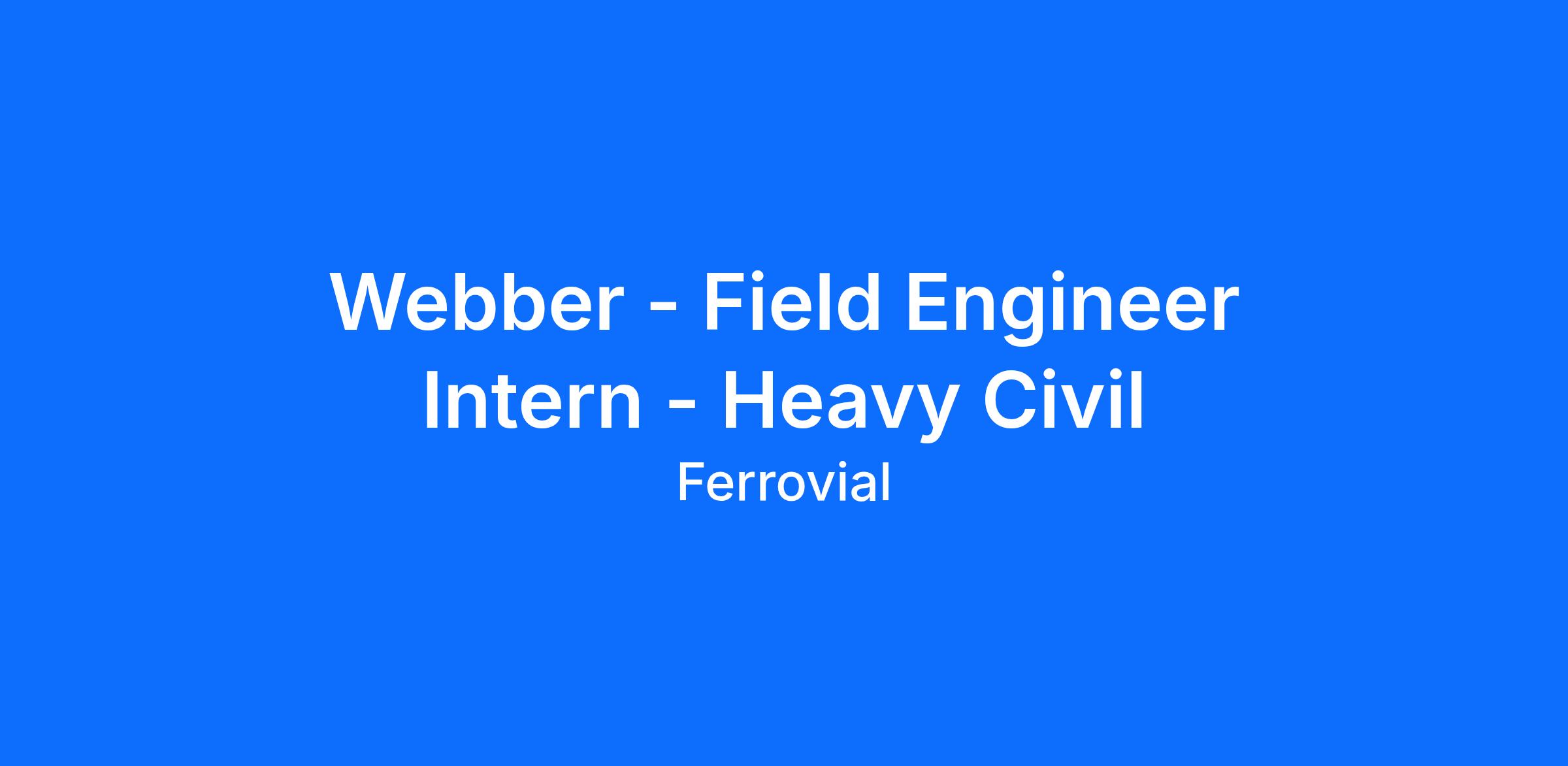 Webber, a Ferrovial company, and its group of companies, are equal opportunity employers. We treat all job applications equally, regardless of gender, color, race, ethnicity, religion, national origin, age, disability, pregnancy, sexual orientation, gender identity and expression, covered veteran status or protected genetic information (each, a “Protected Class”), or any other protected class in accordance with applicable laws.