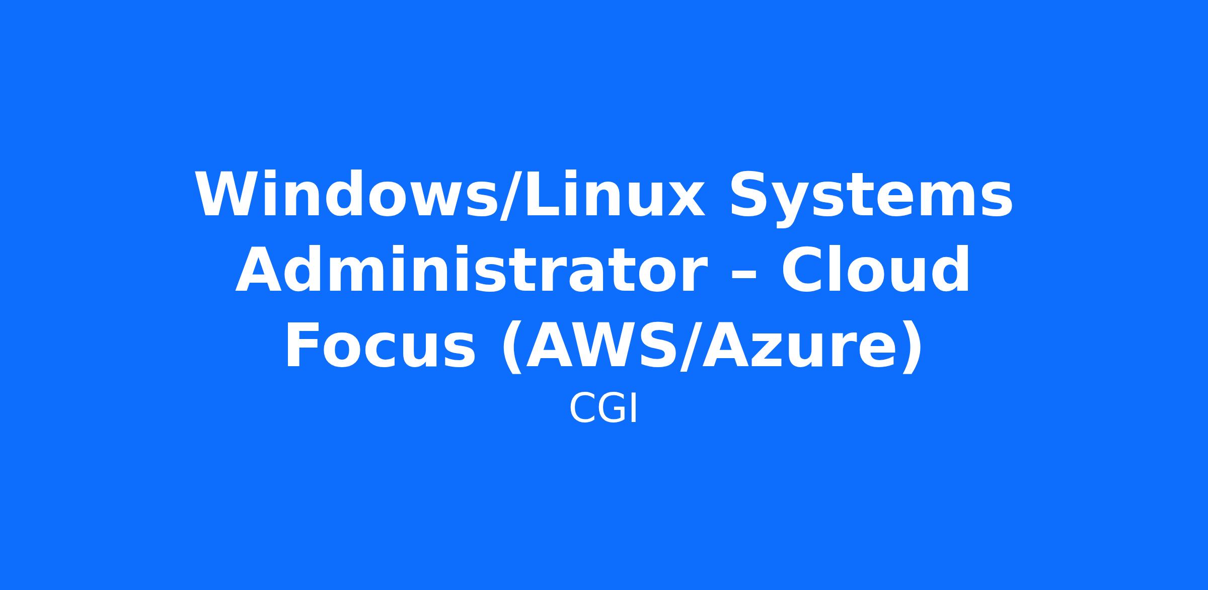 CGI is a forward-thinking organization committed to delivering robust IT infrastructure solutions. We are seeking a skilled Systems Administrator with expertise in both Windows and Linux environments and hands-on experience managing cloud platforms such as AWS or Azure.